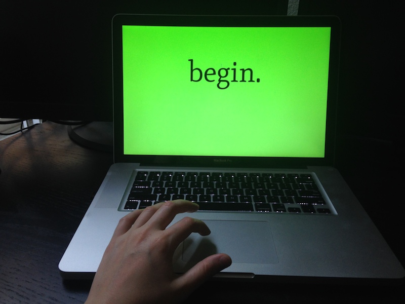 "It Had to Be With You" is an interactive poem about family, culture, language, and secrets. The poem unfolds as a series of words animated in time to music. In order to change the path of the narrative, the user interrupts it by clicking on one of the highlighted words. This will lead the user into a new path, with more clickable words and potential stories.